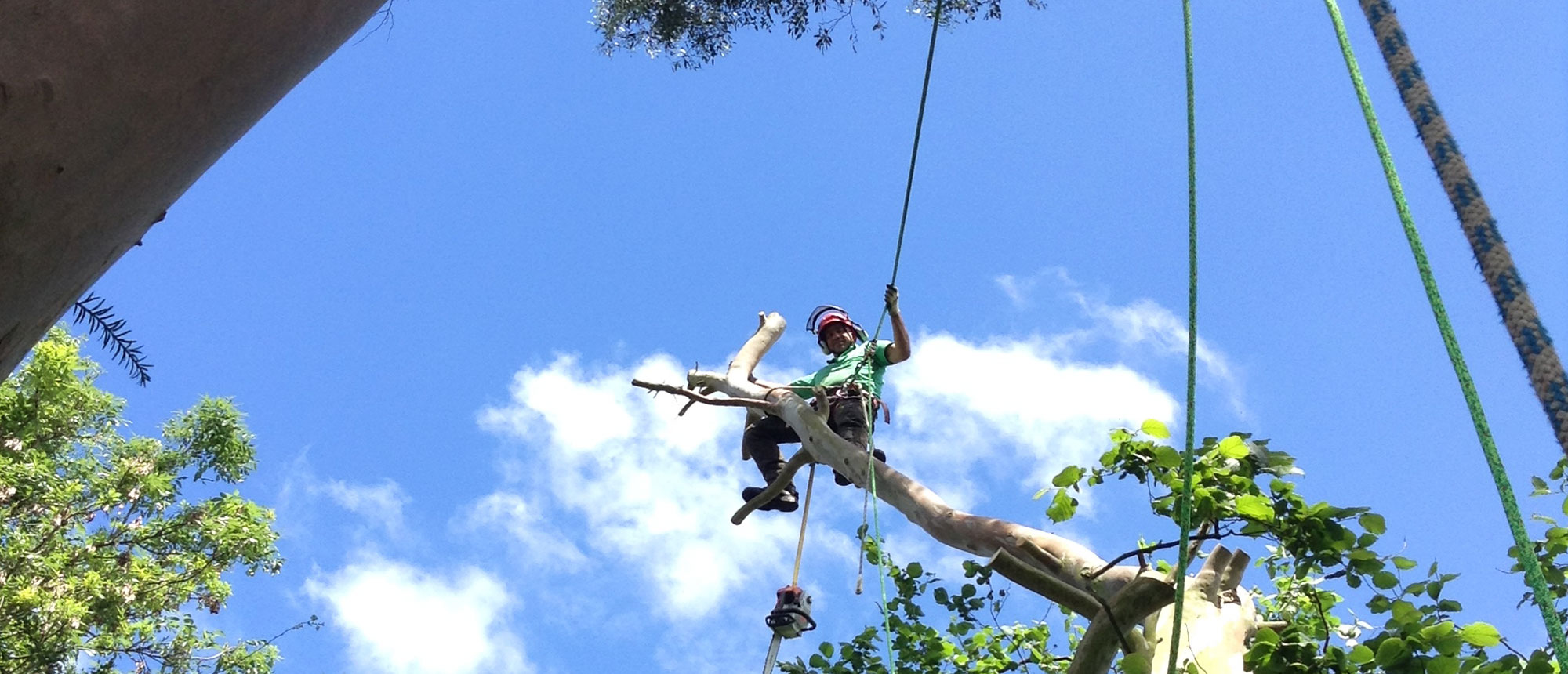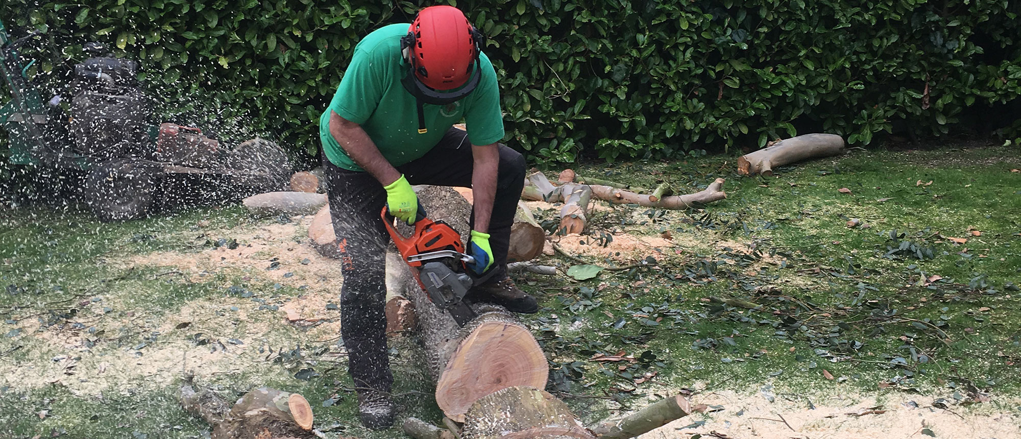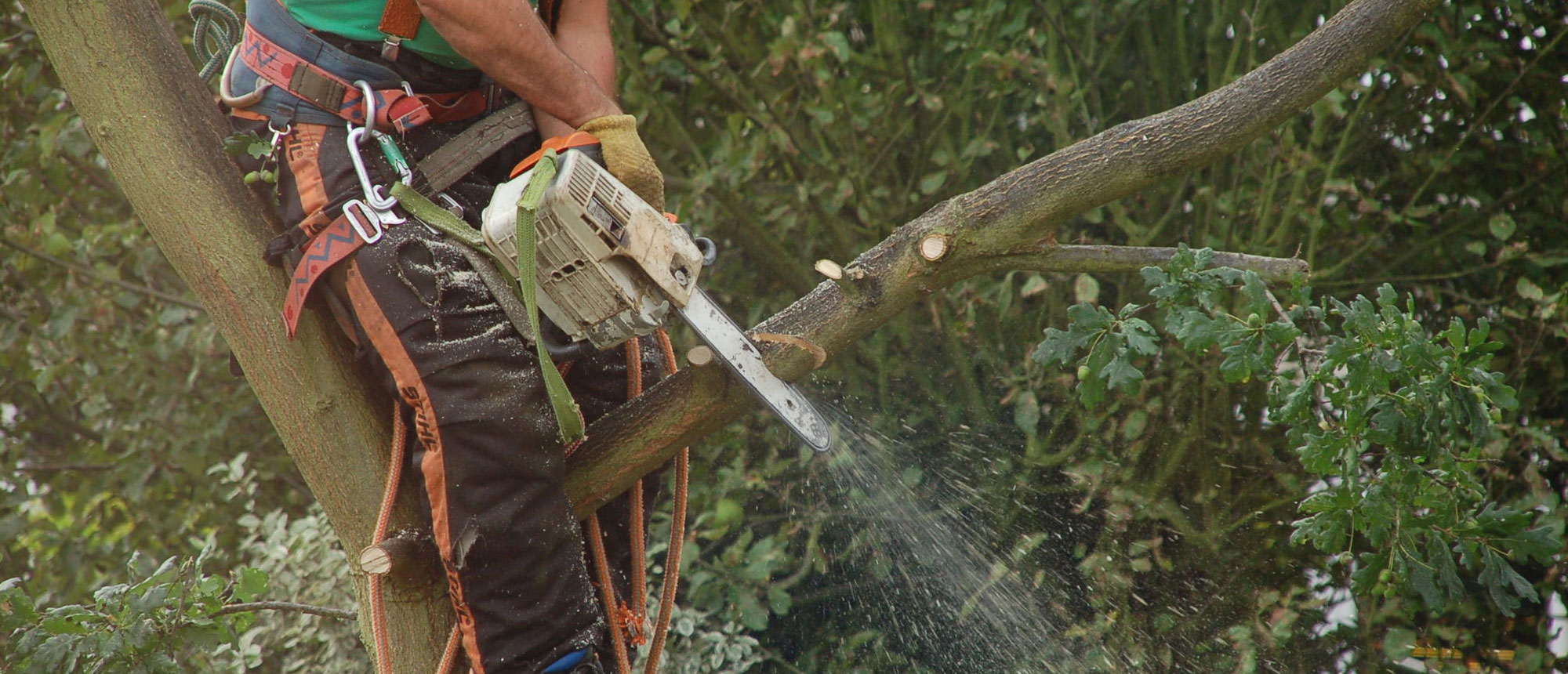 This involves the complete removal of a tree. Where trees are situated in open spaces the felling can be carried out by directional felling which can include the assistance of winching. In small confined spaces where trees may be close together or near buildings or other obstacles we would use sectional felling which involves the use of ropes and rigging equipment and in certain circumstances elevated platforms may be used.